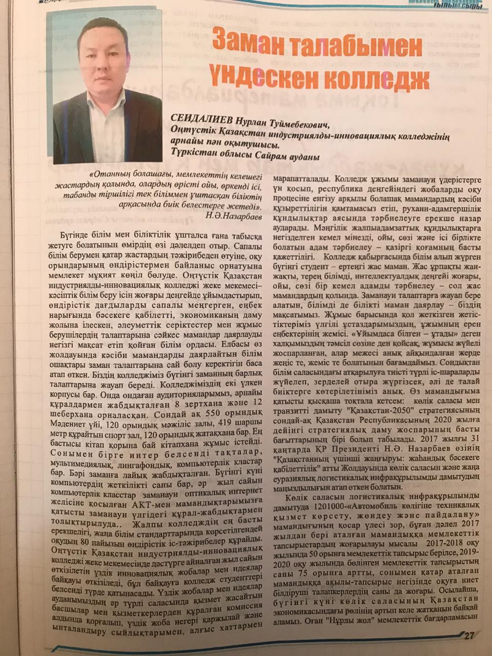 "ЗАМАН ТАЛАБЫМЕН ҮНДЕСКЕН КОЛЛЕДЖ" ОҢТҮСТІК ҚАЗАҚСТАН ИНДУСТРИЯЛДЫ-ИННОВАЦИЯЛЫҚ КОЛЛЕДЖІНІҢ АРНАЙЫ ПӘНДЕР [...]